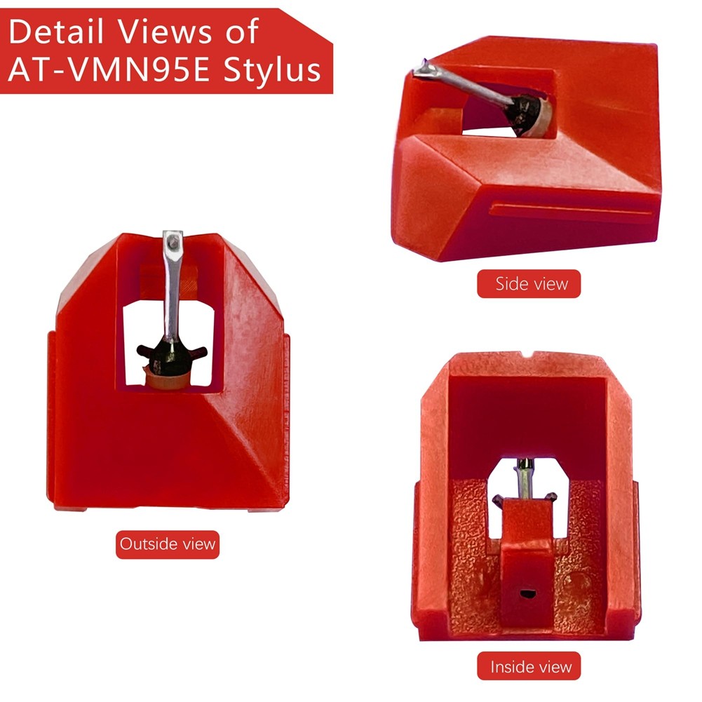 -VMN95E Elliptical Turntable Stylus Replacement, Diamond Record Player8325 Ideal Replacement for Turntables: The AT-VMN95E elliptical stylus is designed specifically for the AT-LP120X turntables. Featuring a striking red housing, this stylus not only enhances the functionality but also the aesthetics of your turntable, making it a perfect blend of style and performance. Enhanced Sound Quality: Experience superior audio fidelity with the AT-VMN95E replacement stylus. Engineered to deliver crystal-clear sound and precise sound reproduction, this stylus is essential for any vinyl record enthusiast looking to get the most out of their vinyl collection. Universal Compatibility with VM95 Series: Compatible with all six models of the VM95 Series cartridges, the AT-VMN95E uses the same electromagnetic engine, allowing for a seamless upgrade or replacement. This versatility ensures you can maintain optimal performance across multiple turntable setups. Optimal Tracking and Reduced Distortion: The AT-VMN95E stylus is designed to operate within a tracking pressure range of 2.5g to 3.5g. This optimal tracking ability enhances frequency and phase responses while significantly reducing distortion, ensuring a pure and enjoyable listening experience. Colour: Red Material: plastic Note: There may be slight color difference or difference in the actual product, which not affect the use Package Contents: 1 x Turntable Stylus