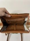 This vintage Dooney & Bourke satchel is a must-have for any fashion-savvy woman. The pebbled leather exterior is beautifully complemented by the natural tan color and gold hardware. The bag features a push lock closure and a brown leather handle/strap that adds a touch of elegance to the design. The satchel is perfect for any occasion, whether it's a day at work or a night out with friends. The large size and leather lining make it the ideal accessory for carrying all your essentials. The bag also comes with a lock accessory to keep your belongings safe and secure. Add this timeless piece to your collection today!