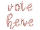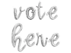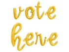 FAST SHIPPING!!! SHIPS NEXT BUSINESS DAY FROM NORTH CAROLINA!!! Get your cursive VOTE HERE Balloon Banner! Balloons vary in size depending on letter but average approximately 16 inches tall when inflated. Set includes the following: 1x - 16 inch cursive VOTE HERE letter balloons 1x - 10M string for hanging the balloons 1x - Straw for inflating the balloons 1x - Detailed instructions for inflating with air Please note that the 16 inch letter balloons CANNOT BE INFLATED WITH HELIUM. You must use AIR ONLY. The are meant to be taped to a wall or hang using the string provided. They are not meant to float with helium. ***For best results inflate the day of event. Balloons will ship deflated and can be inflated with air only using the straw provided.*** CHOKING HAZARD ? Children under 8 yrs. can choke or suffocate on uninflated or broken balloons. Adult supervision required. Keep uninflated balloons from children. Discard broken balloons at once.