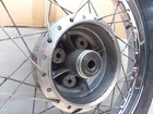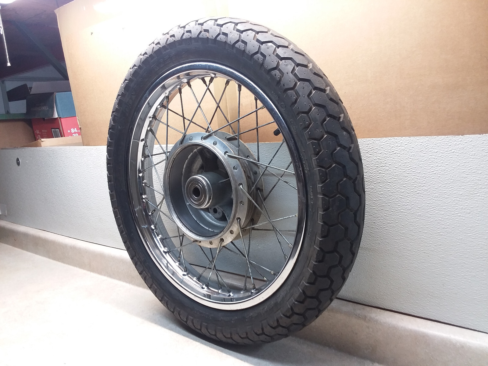 *Used item advertised entirely per pictures, please read the below description and view all pictures carefully. Thanks! TIRE IS BAD, CRACKING FROM OLD AGE. NOT HOLDING AIR. CHROME LOOKS DECENT. SOME SCUFFS, SCRATCHES TIRE IRON MARKS , PITTING AND RUST IS VISIBLE. WHEEL BEARINGS MOVE FREELY. WHEEL SPINS PRETTY STRAIGHT BUT NOT PERFECT. ITEMS MAY HAVE DAMAGE! SEE PICTURES! Could be in the form of scrapes, scratches, road rash, scuffs, spots of corrosion or surface rust, pits, pit specks, oxidation spots/stains from moisture and age, dirt/grime spots or build up, oil residue spots, breaks, cracks, dents, dings, holes, punctures, missing pieces. Or other types of blemishes usually caused from normal use, wear and age. SEE PICTURES DUE TO THE NATURE OF USED MOTORCYCLE PARTS AND THEIR CONDITIONS' BEING SO DIVERSE WE FEEL THE BEST AND MOST EFFICIENT WAY TO SELL AN ITEM IS TO SELL AS IT IS SEEN IN REAL LIFE, PER PICTURES! WE TAKE MANY PICTURES TO SHOW AND ADVERTISE EACH ITEM IN ITS ENTIRETY! NO ADDITIONAL INSPECTIONS, PICTURES OR MEASUREMENTS WILL BE AVAILABLE. WE APOLOGIZE FOR ANY INCONVENIENCES. IMPORTANT! PLEASE READ! Payments are due within 4 days of purchase. ATTENTION INTERNATIONAL CUSTOMERS!!: Import duties, taxes and charges are not included in the item price or shipping charges. These charges are the buyer's responsibility. These charges are normally collected by the delivering freight (shipping) company or when you pick the item up – do not confuse them for additional shipping charges. Please check with your country's customs office to determine what these additional costs will be prior to bidding/buying. ATTENTION!!! Please contact us if the parts you received are not as described. We will do our best to solve any problems. Thank you so much for your interest and viewing our parts!!