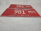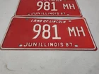 VTG 1987 Red Illinois License Plate MH Truck Mileage Tax Auto Tag Low Number 981