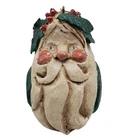 HomeVTG 1988 House Of Hatten Santa Christmas Ornament Green Holly Sitter Rosy. Cheek