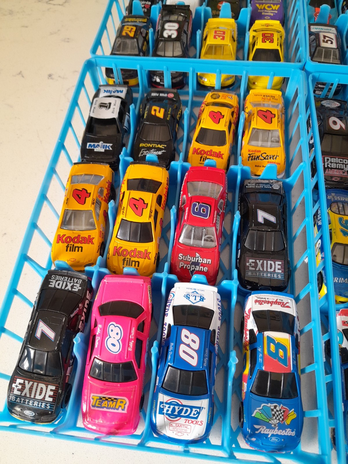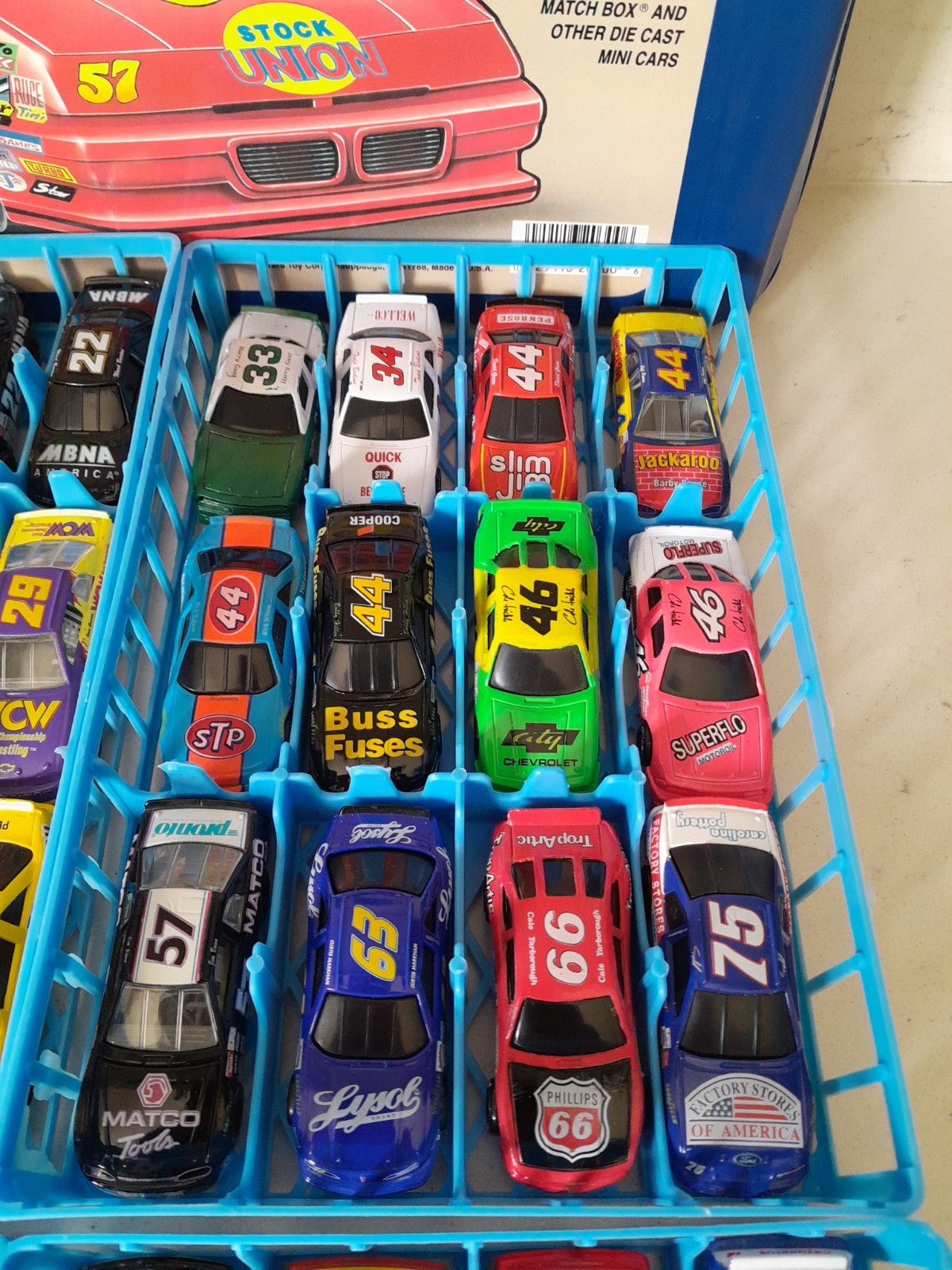 The product is a collection of 48 vintage Racing Champions die-cast cars from the 1990s, featuring Nascar vehicles in 1:64 scale. The set includes a variety of Chevrolet cars in black color, perfect for young collectors aged 3-11. This rare find comes with a storage case for easy organization and display. Perfect for fans of classic cars and racing enthusiasts, this set offers a nostalgic trip back to the golden age of Nascar. All in excellent condition. Some duplicates.