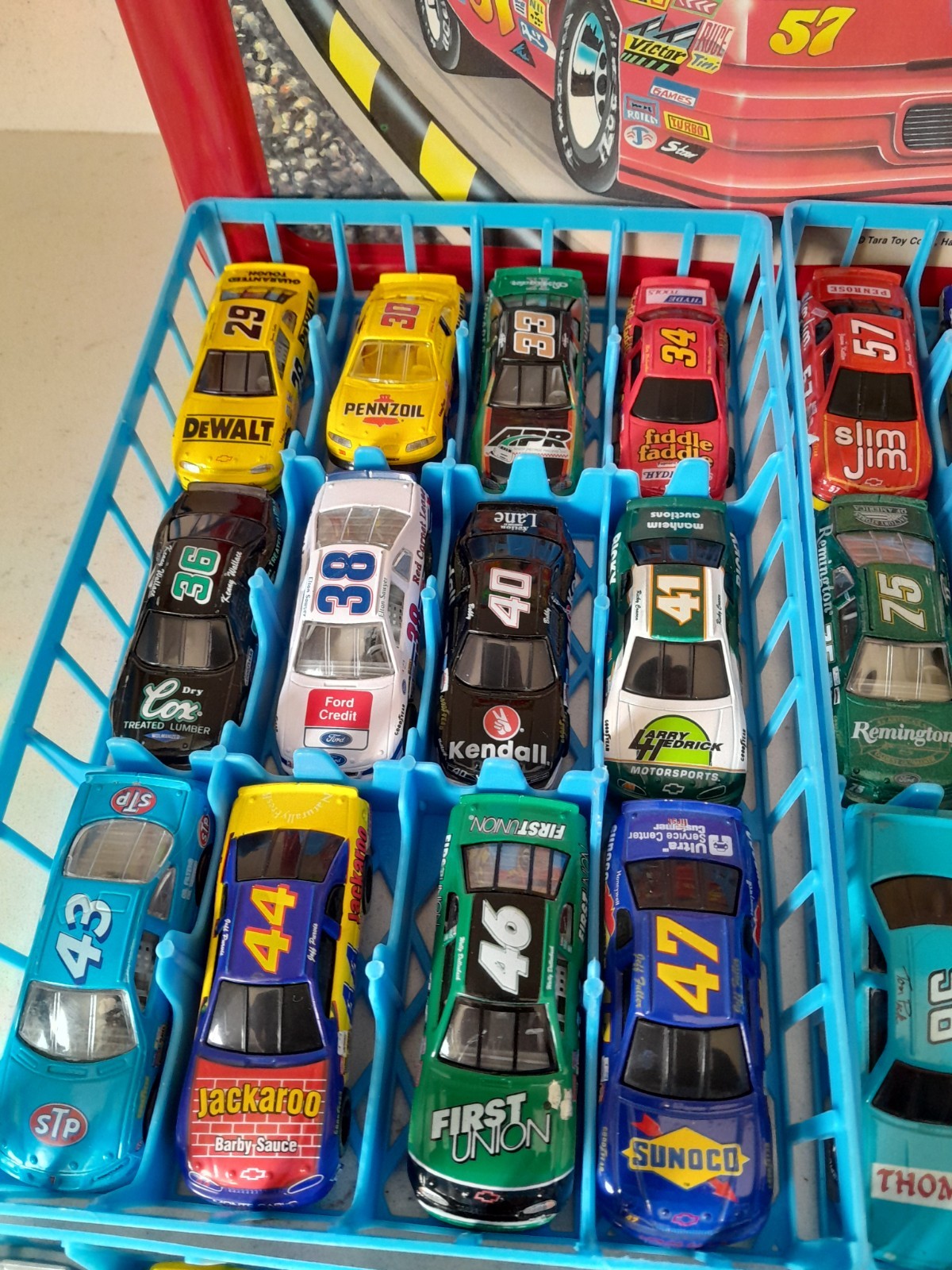 The product is a collection of 48 vintage Racing Champions die-cast cars from the 1990s, featuring Nascar vehicles in 1:64 scale. The set includes a variety of Chevrolet cars in black color, perfect for young collectors aged 3-11. This rare find comes with a storage case for easy organization and display. Perfect for fans of classic cars and racing enthusiasts, this set offers a nostalgic trip back to the golden age of Nascar. All in excellent condition. No duplicates.