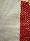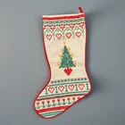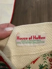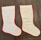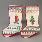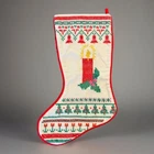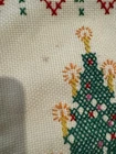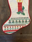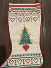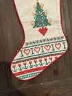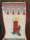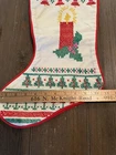 Set of 2 vintage House of Hatten Christmas stockings Ivory fabric with cross stitch design Candle with chromas trees and flowers Christmas tree with hearts and flowers Very good vintage condition A few small spots SEE PHOTOS 18”l x 11”w (across foot) Cotton/linen blend
