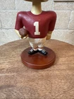 This vintage bobblehead features the iconic Alabama Crimson Tide football team from 2001. It is a officially licensed product from Memory Company and is a must-have for any fan of the team. The intricately designed head is a perfect addition to any collection and is sure to be a conversation starter. The bobblehead is made with high-quality materials and has been well-maintained over the years. It is a great way to show your love and support for the Alabama Crimson Tide.