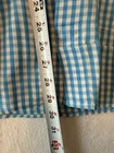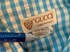 VTG 70’s Gucci Button Up Short Sleeve Shirt Blue Gingham Men’s Sz 15.5 (Medium) 39 EU READ Pre-Owned vintage. Some small blemishes- unknown stain on back of shirt(refer to red circle on photos) two small rust like stains on inside collar (circled in red) I chose not to attempt to remove, buyer buys at own discretion. Light yellowing around neck area. This shirt is dated from late 70’s to 80’s based on tag. It was from my grandfather’s estate and has been pressed and hanging in his closet for years. Please see all photos for best representation. Thank you for looking and supporting my small business!