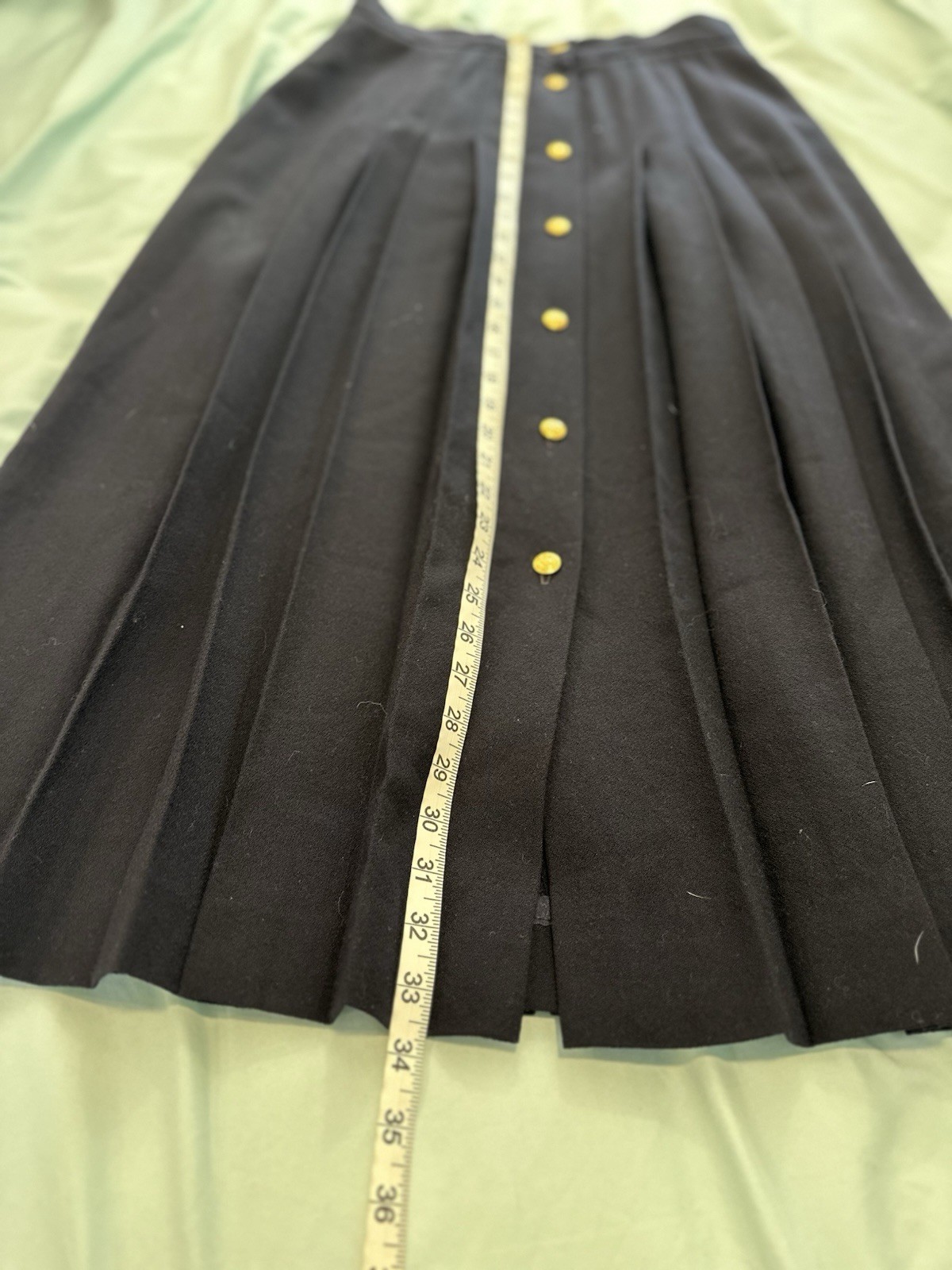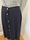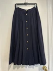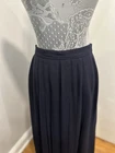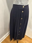 VTG 70s/80s JH Collectible Women’s Sz:12 Navy Blue Maxi Long Wool Pleated Skirt. Gold buttons. Union made. Great condition for the age. Normal Wear. There are two, small what I think are indents from likely a hanger near the buttons. Noted in the photos. Otherwise excellent condition for the age. No rips, stains or defects. Please see pictures for measurements.