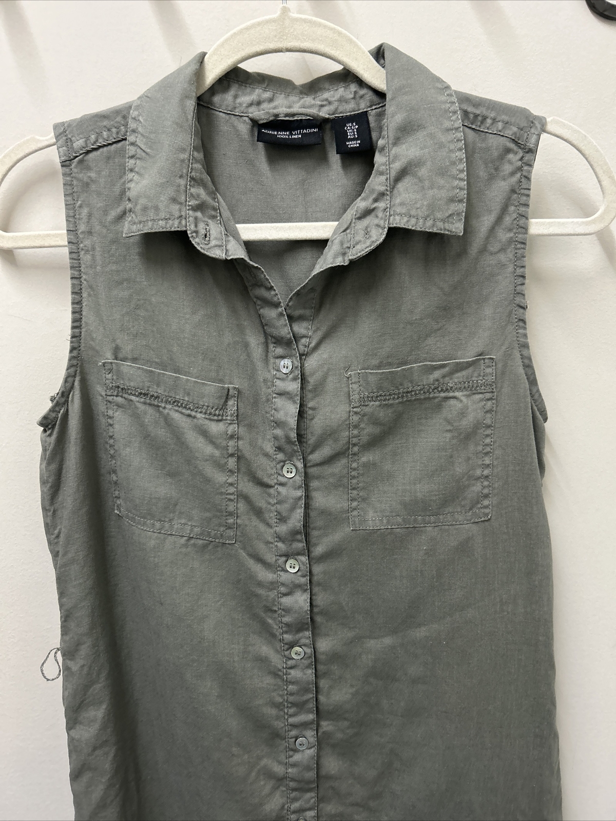 VTG Adrienne Vittadini Womens Dress Sz S Army Green 80s 90s Linen Sleeveless Elevate your wardrobe with this stunning Adrienne Vittadini mini dress. Crafted from high-quality linen, this dress is perfect for any occasion - from a casual day out to a festival or party. The sleeveless design and tank style make it ideal for warmer weather, while the solid army green color adds a touch of edginess to your look. The dress features a retro, vintage-inspired design. It's available in size S and is perfectly suited for women who want to showcase their unique sense of style. The dress length is short, making it perfect to pair with your favorite boots or sandals. 80s, 90s, Vintage, Retro, Army, Festival, Linen, Stripes Movie