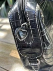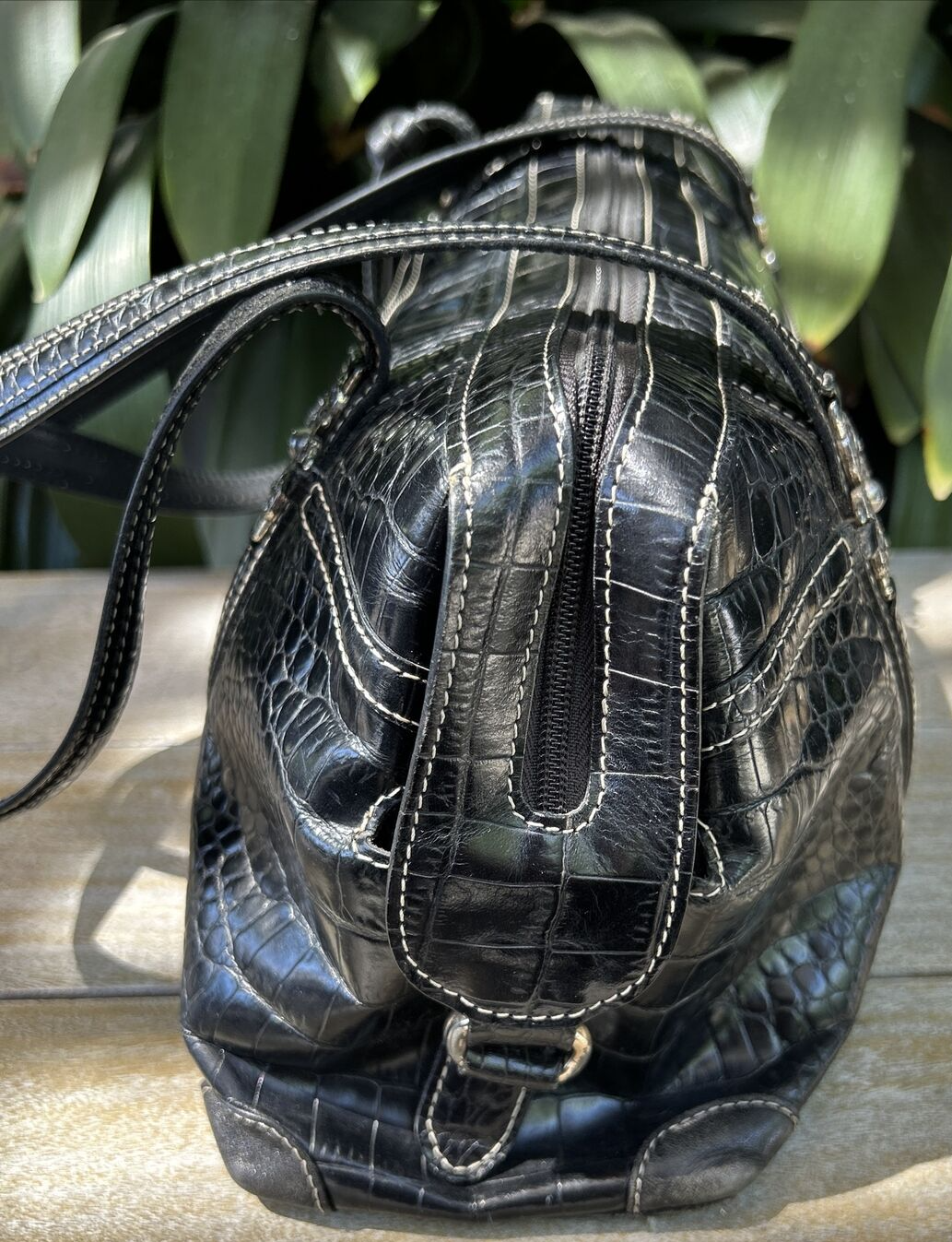 VTG Brighton Anna Rosa Handbag Purse Patent Leather Crock Embossed Black 90s Y2k Multi interior pockets, key strap, beautiful interior color, and detailed hardware. Excellent pre-owned condition. Some small scratches on bottom. Please review photos.