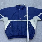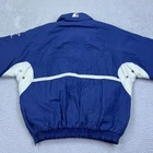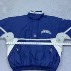 Used vintage condition with significant staining on the interior collar area as seen in photos. There is staining on the front embroidery and general wear/discoloration I recommend measuring yourself before ordering online to help find the perfect fit for you. Please view all photos and reach out with any questions- thank you