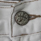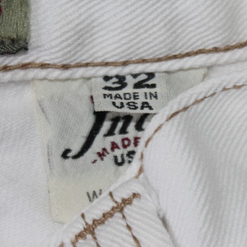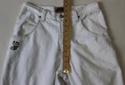The product is a pair of vintage 90s JNCO Smoke Stacks 179 women's jeans in size 32X32, featuring a wide-leg style with a relaxed fit. Made of denim fabric with a light wash, these white jeans are accented with embroidered logos and a zipper closure. With a high rise and a 5-pocket design, these jeans are perfect for all seasons and are machine washable for easy care. The product is from the United States and embodies the 90's theme, making it a unique and stylish addition to any woman's wardrobe.