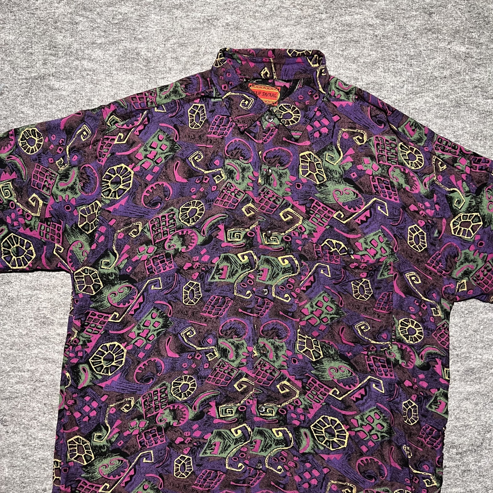 VTG 90s Shah Safari Shirt Large Colorful Abstract Rayon Button Up Short Sleeve Shirt is in excellent condition as shown in pictures, size is also shown in pictures. Feel free to ask any questions about this item, all of our items come from a smoke free environment.