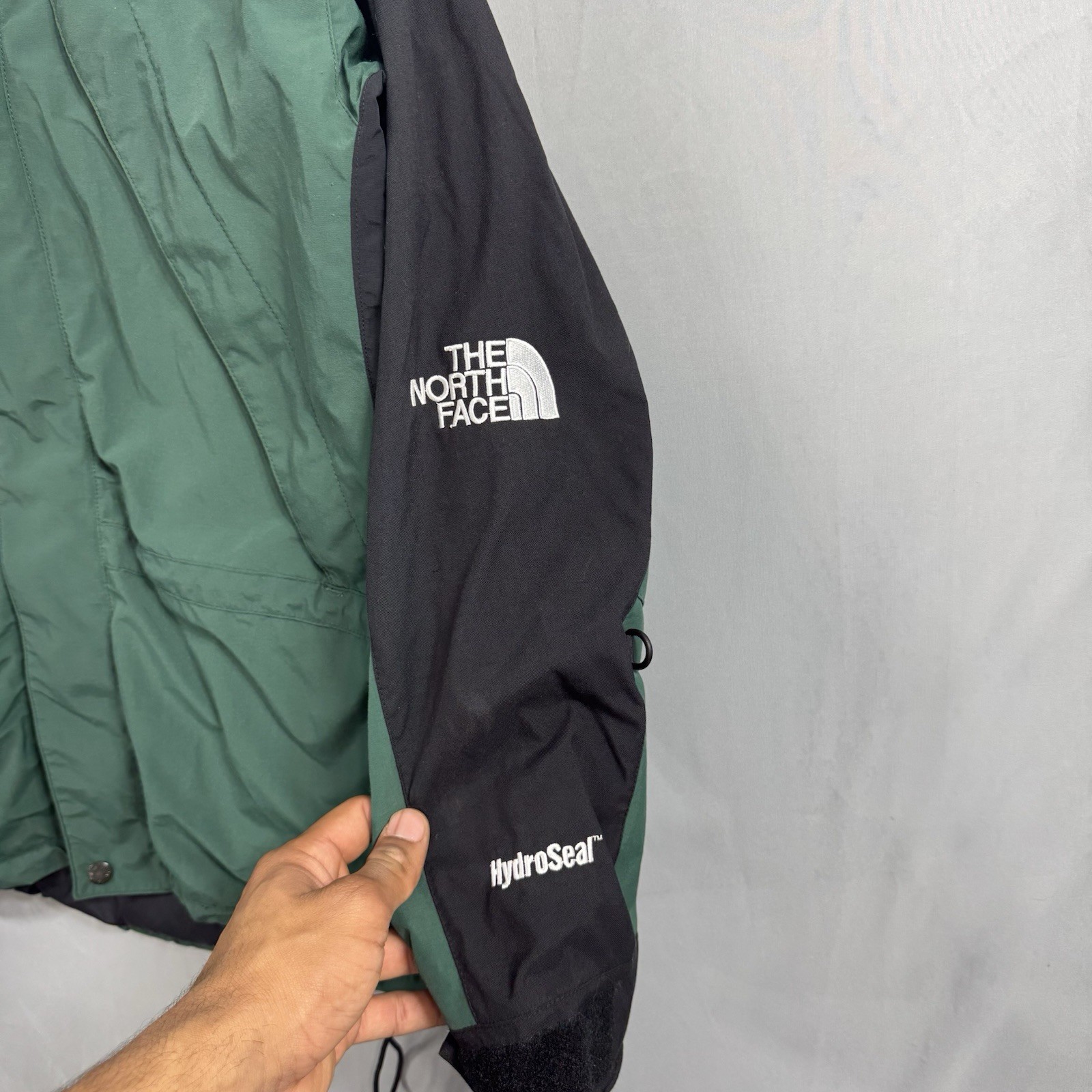 Embrace the retro vibe with this classic VTG The North Face Hydro Seal Parka Jacket from the 90s. The forest green color combined with the iconic North Face branding creates a timeless look that's perfect for outdoor enthusiasts. Designed with a durable nylon outer shell and lining, this parka provides both warmth and comfort during activities such as hiking and skiing. This medium-sized, hooded jacket features the renowned Gore-Tex technology, ensuring waterproof protection in various weather conditions. Its stylish parka design, complete with a thematic 90s touch, makes it a versatile addition to any wardrobe. Whether you're hitting the trails or the streets, this North Face Hydro Seal jacket is sure to be a conversation starter.