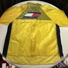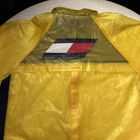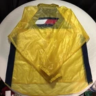 Embrace the nostalgia of the '90s with this vintage Tommy Hilfiger Athletics rain jacket. The classic yellow color, complemented by the iconic box logo and spellout, exudes the era's vibrant style. Sized XL for a comfortable, athletic fit, it's a versatile addition to any wardrobe, suitable for casual outings or your outdoor adventures of walking and hiking. Crafted with a durable PVC outer shell and lining, this mid-length coat is designed to keep you dry in rainier weather. The hooded feature adds extra protection against the elements, while the zip closure ensures a secure fit. Machine washable for easy care, this jacket is a practical choice for the modern man who values both style and functionality.