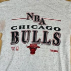 Show off your love for the Chicago Bulls with this vintage Trench NBA short sleeve crewneck T-shirt. This officially licensed shirt is perfect for any basketball fan and features the iconic Bulls logo in gray. Made in the United States, this shirt is available in size M and is perfect for men who want to show their support for the team during regular season games. Whether you're cheering on the Bulls from the stands or watching the game from home, this shirt is a must-have for any fan. It's made from high-quality materials and is designed to last. Don't miss out on this opportunity to show your love for the Chicago Bulls in style. SKU: N/A