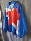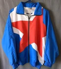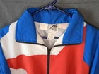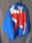 This vintage Anaconda Sports windbreaker is a must-have for any 90s sports enthusiast. USA Red, white and blue themed, this jacket features a unique geometric pattern and is constructed from durable polyester fabric with a cotton lining. The full zip closure and lightweight design make it perfect for both casual wear and streetwear. The jacket is accented with the iconic Anaconda logo and is available in size XL. The multicolor design is perfect for any occasion and the canvas fabric type adds an extra touch of durability. This windbreaker is a great addition to any vintage clothing collection and is perfect for the fall and winter seasons.