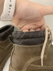 VTG 90s Y2K Maurice’s Chunky Hiker Poly Lace Up Boot Size 7 Women. Black leather area is peeling, please see photos. Has some discoloration on laces, and has a small stain on left front toe area, also pictured.