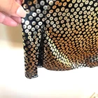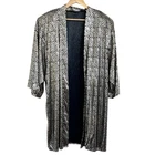 Gold Black Slinky Circle Polka Dot Open Front Long Line Vintage Smart Lady Elegant Cocktail Flashy Shiny Duster Jacket 3/4 sleeve Lightweight airy flowy Shoulder padding Side slits 100% polyester Made in USA Hand wash Sz 1X armpit sleeve 24 length 16 slit 37 Beautiful condition