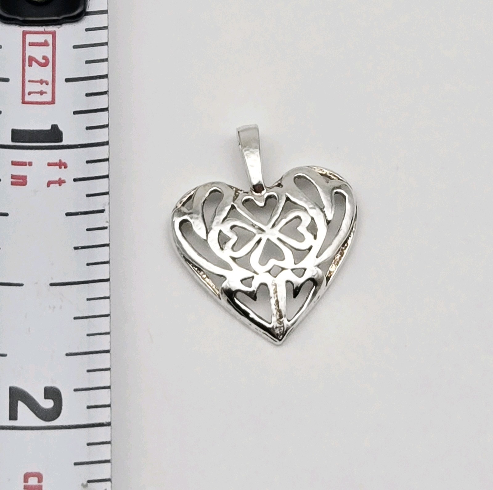VTG 925 Sterling Silver Celtic Clover Ornate Heart Filigree Petite Pendant - 1.0g