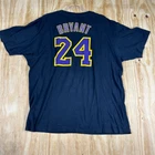 Show your love for the Los Angeles Lakers and the late Kobe Bryant with this vintage Adidas Black Mamba #24 crewneck t-shirt. The shirt features Bryant's iconic number and is officially licensed by the National Basketball Association (NBA). It is made of high-quality materials and has a comfortable fit, making it perfect for regular wear. This shirt is a must-have for any basketball fan and is great for wearing to games or just around town. It is available in men's size 2XL and is made in Honduras. Get your hands on this piece of fan apparel and show your support for the Lakers and Kobe Bryant. SKU: FB-06-61