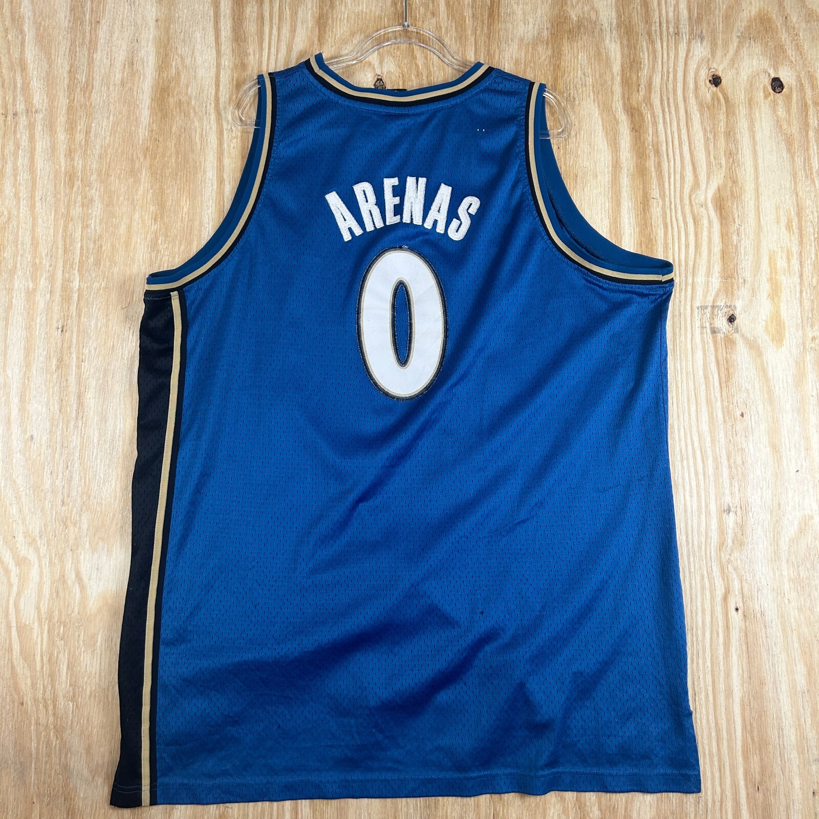 Up for sale is a vintage Adidas limited edition Washington Wizards jersey featuring the number 0 of Gilbert Arenas. This men's 2XL jersey is perfect for basketball fans who want to show their team spirit. The jersey is made in Honduras and is officially licensed by the National Basketball Association (NBA). The blue color of the jersey represents the team's colors and is perfect for wearing during the regular season. The jersey has a capacity of 8 oz and is perfect for any basketball game. Don't miss out on the chance to own this amazing jersey!