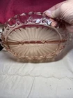 This vintage Anchor Hocking pink depression dish is a beautiful addition to any kitchen or dining room. The scalloped edges and divided design make it perfect for serving oysters, pearls, or any other delicate seafood. Crafted from durable glass, this dish is both functional and stylish. The brand is well-known for their quality and this dish is no exception. It would make a great gift for anyone who loves vintage kitchenware.