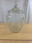 Vintage Anchor Hocking "Mother's Cookies" embossed glass cookie jar with lid. Released in the 1980's, this collectors item brings nostalgia and functional use to any kitchen. 10.25 inches in height and roughly 7 inches across. This is a large capacity cookie jar. Condition: Excellent pre-owned condition. No chips or rough spots on the lid or rim, no cracks or chips. Please reach out with any questions or if you have a reasonable offer. Thanks for checking out our listing!