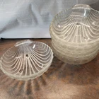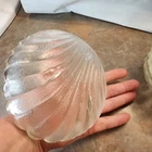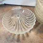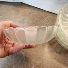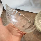 The product is a set of six vintage Anchor Hocking footed glass scallop shell bowls, each measuring 5.75 inches in diameter. These textured round serving bowls are clear in color and made of glass. The set includes six footed glass scallop shell bowls, perfect for all occasions and adding a touch of elegance to any dining or serving table. The vintage design and shell theme make these bowls a charming addition to any home decor.