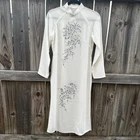 VTG Ao Dai Asian Style White Floral Print Long Sleeve Collared Slit Dress SM/MD Excellent condition Pre loved Single stitching Could be from 70s era No tags Measures to fit a size small-medium please see measurements for proper fit Measurements are approx Bust: 36” waist: 34” hip: 38” length: 46”