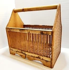 This vintage magazine rack is a stylish addition to any room. With a free-standing design, it can hold one compartment and measures 14 inches in length, height, and width. The rack is made of a combination of rattan, wicker, and bamboo, giving it a unique and boho feel. Perfect for adult use, this rack is suitable for a variety of spaces, including the garage, bathroom, kitchen, living room, bedroom, and hallway. It requires no assembly and is ideal for holding magazines, books, and other items. The rack is categorized under Home & Garden, Household Supplies & Cleaning, and Home Organization, making it a versatile and practical choice for any home.