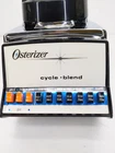 This vintage Osterizer blender is a powerful and versatile addition to any kitchen. With a capacity of 5 cups and 10 speed settings, it can handle all your blending needs. From smoothies to sauces, this electric blender is up for the task. The black and chrome finish adds a touch of retro shine to any countertop. This model, 847, is a classic and sought-after item for collectors and blender enthusiasts alike. Don't miss out on the chance to own a piece of kitchen history. Nice working condition, very clean. There is a small deformation in the label behind the first orange button, see last photo.