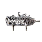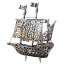 This vintage boat ship sculpture is a beautiful piece of art deco style. Crafted from solid stamped 925 sterling silver, it features intricate ornate filigree details that are sure to catch the eye. Made in Italy, this sculpture weighs 24.2 grams and is a stunning addition to any nautical or antique collection. Stamped 1547 AR has movable sails along with a pair of stands allowing this item to stand upright.