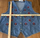 This VTG Bobbie Brooks Women's Denim Vest in XL size features a blue floral embroidered design, making it a stylish and unique addition to any wardrobe. With a relaxed fit and short length, this lightweight vest is perfect for casual, travel, or workwear occasions during the summer, fall, or spring seasons. Made of cotton denim, this vintage piece from the 90s exudes a Western, bohemian, and retro vibe, adding a touch of flower-themed art to your look. Easy to care for with machine washable instructions, this collarless vest is a versatile and timeless choice for women who love a blend of classic and trendy styles.