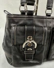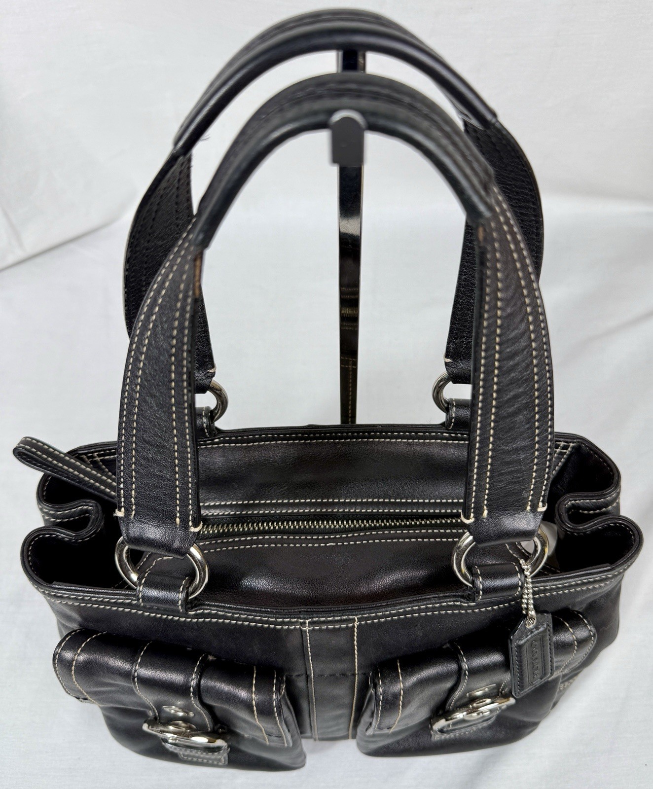 πππ VTG COACH BLACK SILVER DOUBLE FRONT POCKETS Leather Soho Y2K Handbag 8A09. This bag also has side extender snaps to made the bag larger when needed. Preloved:EXCELLENT CONDITION INSIDE AND OUT! Please see pictures. This vintage Coach handbag features a classic black leather design with silver hardware accents. The medium-sized bag has a rectangular shape with double front pockets and a zip, magnetic, and snap closure. The black leather handles drop at 8 inches, making it easy to carry for various occasions such as travel, weddings, parties, casual outings, formal events, workwear, and business meetings. The pebbled finish and stained-resistant exterior with white stitching adds a touch of sophistication to this limited edition piece from the 90s. The interior is lined and includes inner and outer pockets for organization. ***PLEASE LOOK AT ALL OF OUR PICTURES FOR CONDITION, MATERIALS AND MEASUREMENTS. ***WE GUARANTEE THAT OUR ITEMS ARE AUTHENTIC OR WE GIVE YOU YOUR MONEY BACK. *** We combine shipping to save you money on multiple items. You pay the highest shipping on one item and the next three items are $1.50 shipping per item. The 5th item will start the cycle again. We hope this helps you. π Inventory #0831/725-140 THANK YOU FOR CONSIDERING OUR ITEMS AND PLEASE CHECK OUT OUR EBAY STORE - ebay.com/str/morinfashions ***Please add us to your list of βFavorite EBay Storesβ. Just click the Heart next to Morin Fashions so you can find us again! π We are not affiliated with or represent any other company than Morin Fashions. Thanks Again, HAVE A BLESSED DAY! πππ ebay.com/str/morinfashions