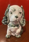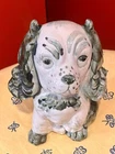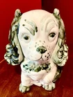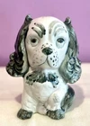 All the haughtiness and eye-rolling superiority you love about these cocky little beings, rolled into one slightly irritated-looking Staffordshire-style figurine. Complete with massive, elaborate ears reminiscent of the powdered wigs of the era in which these originally became popular, this expressive little figure is done in a classic, limited palette of white and a washy-y forest green. Petite ( 5 x4") statuette is in EUC with three miniscule finish dings, as shown. No cracks, crazing, staining or fading. Tons of presence for such a diminutive piece! Cute, vintage cocker figurine ships USPS Ground Advantage from Los Angeles.
