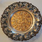 The vintage plate features an etched and embossed design depicting Egyptian gods and people. It is made of brass , copper with silver plating and measures 13 inches in diameter. This decorative piece was manufactured in Egypt. The plate is in very good vintage cindition...sturdy and solid..very detailed. E- mail me with questions. Thanks for checking out my auctions!