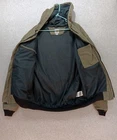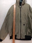 The VTG Carhartt Jacket Coat in XL Tall size is a classic green hooded coat with a black logo tag, perfect for workwear occasions. Made of durable cotton canvas outer shell material and lined with nylon, this short-length coat features a zip closure and is machine washable for easy care. The jacket's J360 ARG style and Carhartt brand add a touch of Western and outdoor themes, making it a versatile and stylish choice for men needing a big and tall fit.