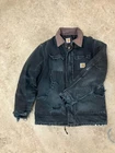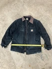 The product is a vintage Carhartt jacket for men in black, featuring a quilted nylon lining and made of duck canvas with polyester insulation. It has a mid-length design with a zip closure and is suitable for various occasions such as travel, casual wear, workwear, and outdoor activities like walking and hiking. The jacket has a regular fit and includes accents like a zipper and the Carhartt logo, making it a stylish and functional addition to any wardrobe.