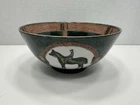 No chips or cracks. This is a vintage ceramic bowl featuring hand-painted polo players and horses. Era: It likely dates back to the 1950s. Origin: Made in China, potentially by the company WBI. Style: Equestrian theme, showcasing polo players on horseback. Material: Ceramic, possibly porcelain VTG Ceramic 1950s Decorative Bowl With Equestrian Theme Polo Player Horse 8”