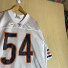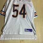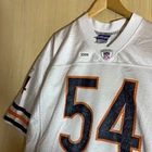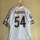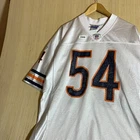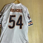 This is a vintage Chicago Bears jersey, officially licensed by the NFL. It is a white short sleeve jersey in size L for men, featuring the player Brian Urlacher's number 54. The jersey is a product of the National Football League (NFL) and is designed for the Chicago Bears team.