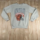 Show off your love for the Cincinnati Bengals with this vintage NFL football sweatshirt. The gray color and retro design make it the perfect addition to any fan's collection. This unofficially licensed sweatshirt features a 15 oz capacity and is made for men's size M. The sweatshirt is perfect for regular season games and is great for wearing to the event or just around town. The design showcases the team's name and logo, making it a great way to show your support. Get this unique piece of fan apparel today and add it to your collection. SKU: PK-36-66