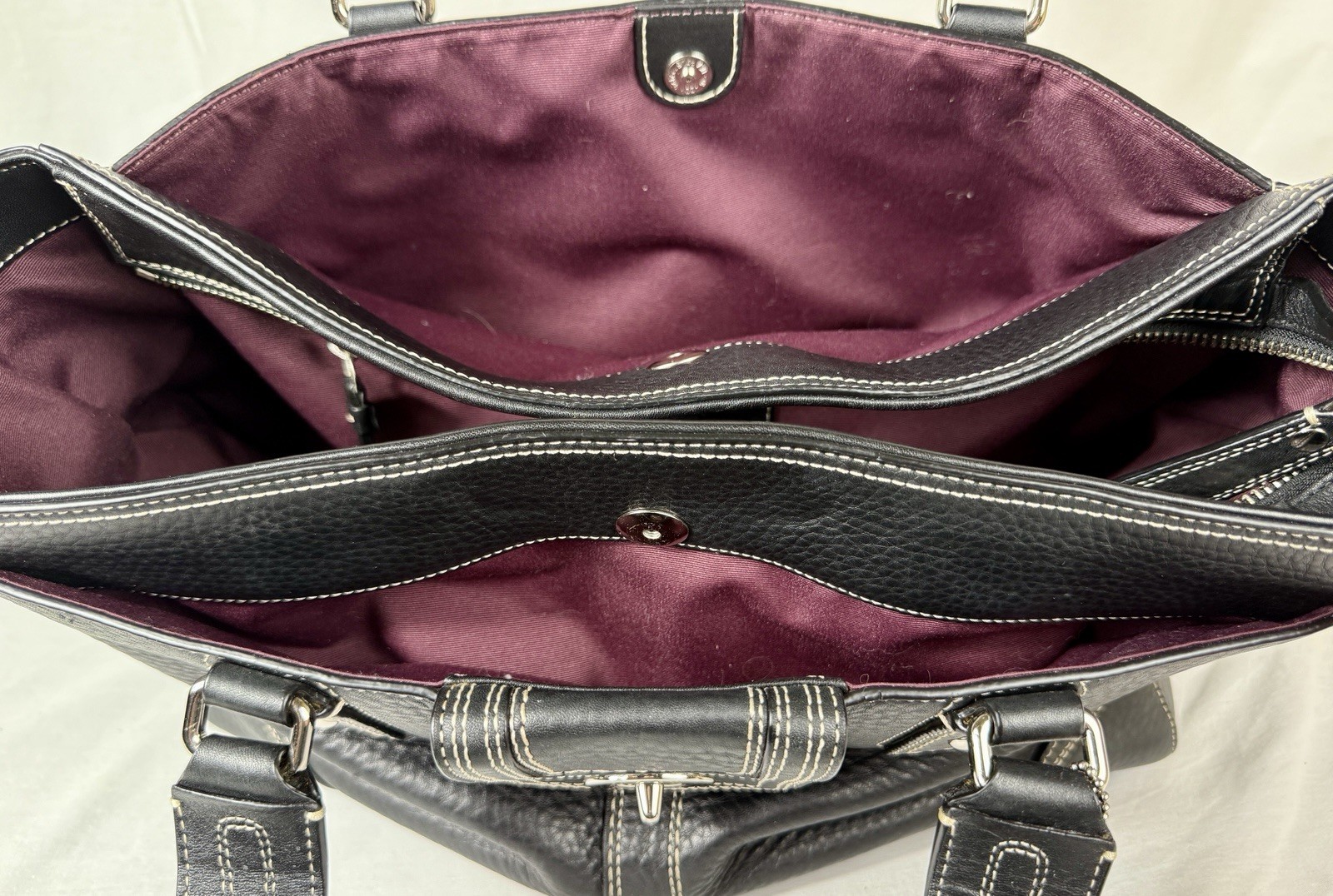 πππ VTG Coach Legacy Black Lg Tote Pebbled LTR Turnlock SIDE POCKETS F13980. Preloved EXCELLENT CONDITION The Vintage Coach Legacy TOTE is an ORGANIZERβS DREAM!! The Large black Tote is a versital, stylish and practical shoulder bag designed for the modern woman on the go. Made from pebbled leather with silver hardware BUCKLE accents, this tote features double leather handles and a zip closure for security. With a spacious interior equipped with inner dividers, pockets, and a laptop sleeve, this bag is perfect for travel, parties, casual outings, work, and business meetings. The outside slip packets are perfect for your phone, laptop, tablet, keys or glasses. Itβs a great bag for all of your essentials to carry daily, a business bag or a weekender. The Classic Turn-lock Close and pebbled leather finish adds a touch of vintage charm to this professional and versatile accessory. If you plan to use it for a laptop bag please check sizes. This is an organizerβs DREAM BAG!! ***PLEASE LOOK AT ALL OF OUR PICTURES FOR CONDITION, MATERIALS AND MEASUREMENTS. Props are not included like phones, bags, mannequins (or her clothes), etc. ***WE GUARANTEE THAT OUR ITEMS ARE AUTHENTIC OR WE GIVE YOU YOUR MONEY BACK. *** We combine shipping to save you money on multiple items SHIPPED TOGETHER. You pay the highest shipping on one item and the next three items are $1.50 shipping per item. The 5th item will start the cycle again. We hope this helps you. π Inventory #0781/525 THANK YOU FOR CONSIDERING OUR ITEMS AND PLEASE CHECK OUT OUR EBAY STORE - ebay.com/str/morinfashions ***Please add us to your list of βFavorite EBay Storesβ. Just click the Heart next to Morin Fashions so you can find us again! π We are not affiliated with or represent any other company than Morin Fashions. Thanks Again, HAVE A BLESSED DAY! πππ ebay.com/str/morinfashions