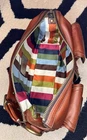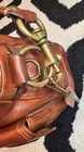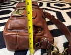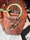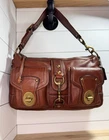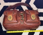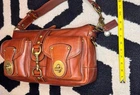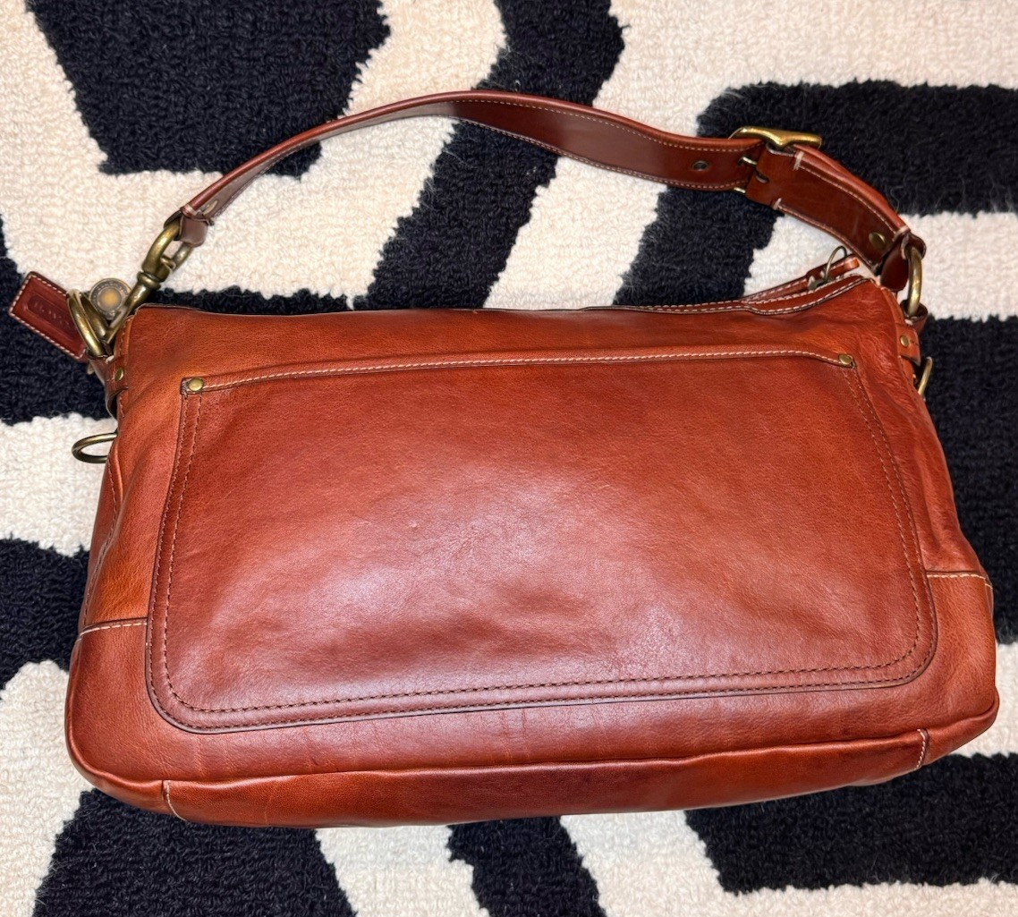 This handbag is GORGEOUS! It’s in excellent clean condition, no smells. Note, as pictured, there is a slight surface scratch on the bottom of the bag, might be original grain in leather. Please look at all pictures as part of the description. Hard-to-find authenticated Coach Legacy Mandy Satchel in the stunning and whiskey color leather, released as part of Coach's 65th Anniversary Collection. Crafted from premium leather that develops a rich, beautiful patina over time-this style. Bag Features: • Style No. A0769-10331 • Color: Whiskey/Cognac • Approx. 15" L x 9.5" H x 9" D just the structure of the bag without pocket or hardware measurements • Dual leather shoulder straps (8" drop) • Golden brass hardware • Zip top closure with leather pull • Two front flap pockets with buckle detail • Side turnlock slip pockets • Fully lined with Legacy striped sateen fabric • Interior zip pocket + two slip pockets • Comes with original leather Coach hangtag and Coach dust bag Will ship with care.