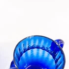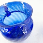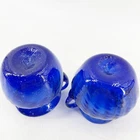 VTG Cobalt Blue Swirl Bubbles Hand Blown Art Glass Creamer Open Sugar Bowl Set Both are approximately 3 1/4" diameter and 3 3/4" tall. Both have visible rough pontil marks on bases. Sugar bowl has two applied handles and creamer has applied handle. Lovely set!