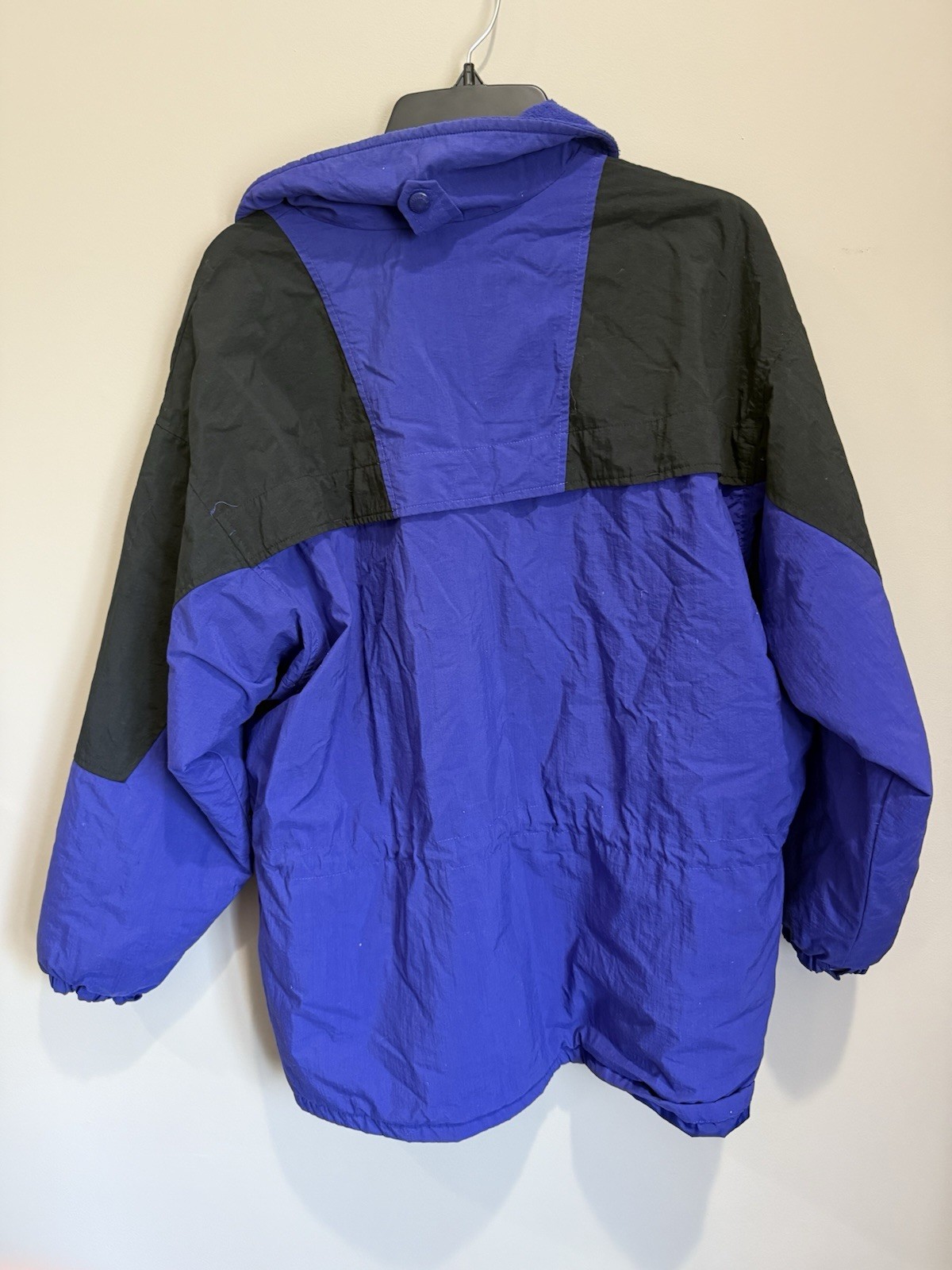 Embrace the elements with this vintage Columbia Sportswear men's ski jacket in a timeless black and blue color scheme. Designed for the winter sports enthusiast or the casual wearer seeking functionality and style, this jacket features a durable nylon outer shell and a cozy polyester lining, ensuring comfort during colder weather. The mid-length cut and stand-up collar offer added protection against the chill. This large-sized windbreaker is equipped with a reliable zip closure and easy-to-reach pockets, ideal for travel or everyday use. The solid black design with subtle blue accents complements a variety of outfits, making it a versatile addition to any wardrobe. Machine washable for easy care, this jacket is ready for your next outdoor adventure.