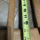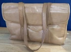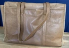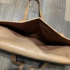 This vintage Colombian leather briefcase is the perfect accessory for any occasion. With a solid pattern and distressed finish, this rectangular-shaped bag features magnetic closure and double handles with a 14-inch drop. The bag is made of high-quality leather and has a brown exterior and lining color, with brown hardware accents. The bag is large in size, measuring 16 inches in width, 11 inches in height, and 3 inches in depth. It is lined with satin and has inner dividers, as well as inner and outer pockets for storage. The bag is padded and can be packaged for travel. It is a classic and rustic-themed bag suitable for school, business, and workwear.