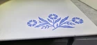 This beauty is a must-have for collectors of this pattern! ****See photos closely for condition. ****There are scratches on a few places along the edges, and when you look closely, tiny dots of paint loss on the back from sitting on a counter top. You'll need to add rubber feet of desired. There are a couple of very small orange stains, possibly rust. I'm disclosing very small issues, as this piece looks spotless at first glance! The cornflower design and white coating on top is almost perfect. I'll be taking extra care and costs to package this item for safe shipping. Recycled packaging used when available. The VTG Corning Blue Corn Flower Counter Saver is a vintage kitchen gadget with a retro design. This 11" x 15" glass counter saver features a floral pattern in white, adding a touch of charm to any kitchen decor. The large, rectangular shape makes it ideal for catching spills or for use as a decorative display. Perfect for collectors or those looking to add a unique piece to their kitchen, this CorningWare item is a rare find. Thanks for looking!