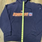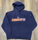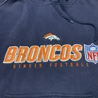 Show your support for the Denver Broncos with this vintage Reebok NFL hoodie. Made in Nicaragua, this navy blue hoodie is perfect for any fan of the team. The hoodie is designed for men, with a size of M, and features the iconic team logo on the front. Ideal for football season or everyday wear, this hoodie is a must-have for any Denver Broncos fan. Whether you're cheering on the team at home or at the stadium, this hoodie is sure to keep you warm and comfortable. Get your hands on this officially licensed product today!