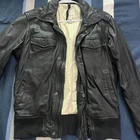 VTG Diesel Youth L Black Lamb Leather Jacket Banded Collar Zip 20”W X 25”L